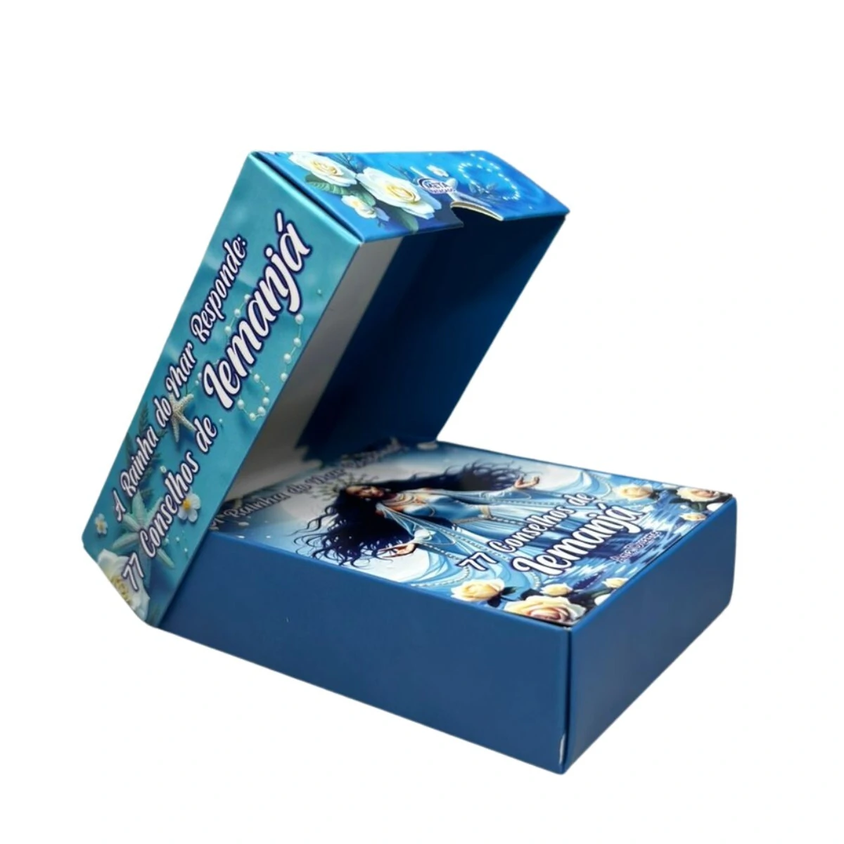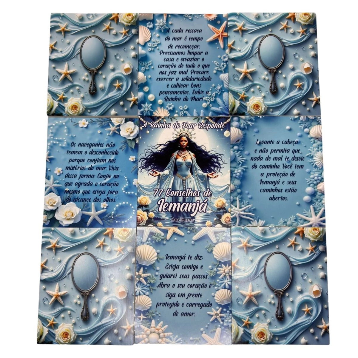 Conecte-se com a força serena, acolhedora e poderosa de Iemanjá, a grande Mãe das Águas Salgadas, através deste belíssimo Box 77 Conselhos.