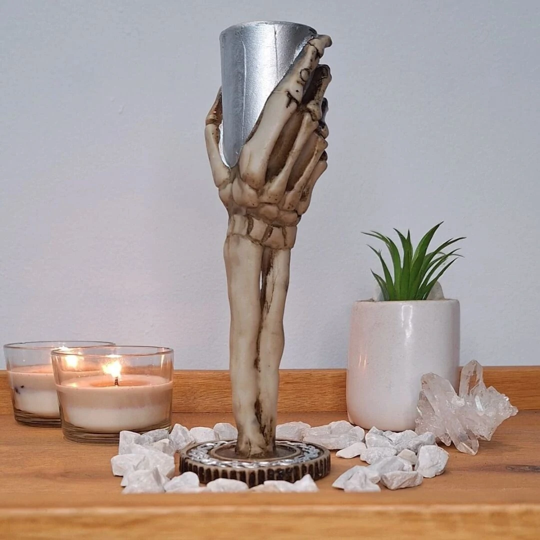 Castiçal Mão de Esqueleto - Toque Macabro na Decoração