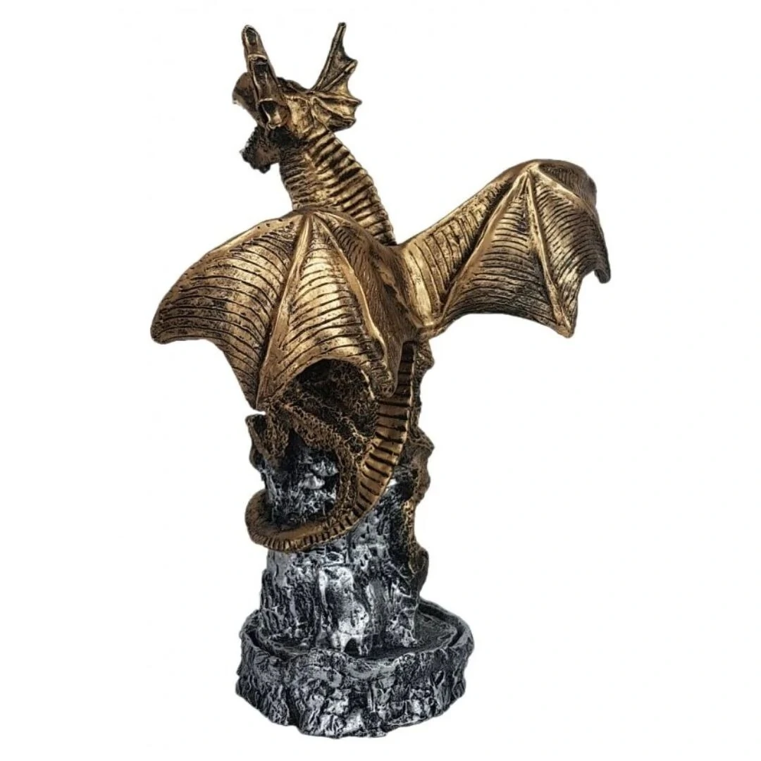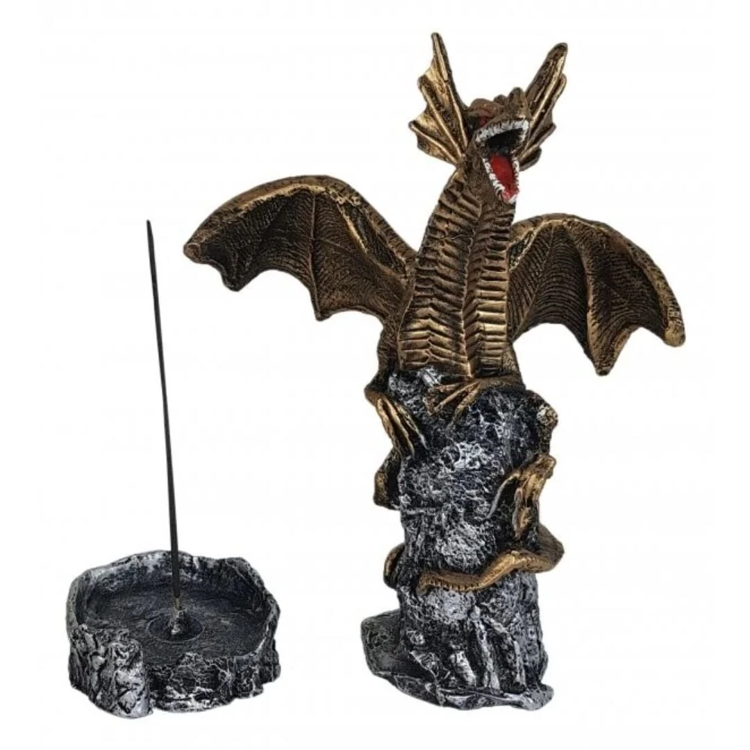 O Incensário de Dragão de Asas Abertas vertical é uma peça elegante e funcional, perfeita para quem aprecia o ritual de queimar incenso e decoração para a casa. Seu design único em forma de cabeça de dragão da um toque místico, medieval e decorativo ao ambiente. Ideal para utilizar em momentos de meditação, relaxamento ou como um elemento decorativo em qualquer espaço.