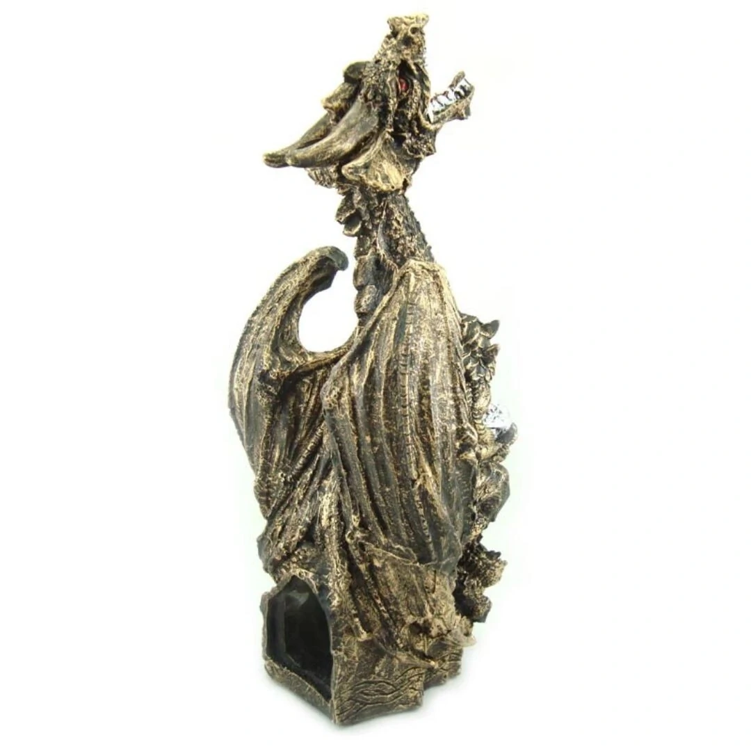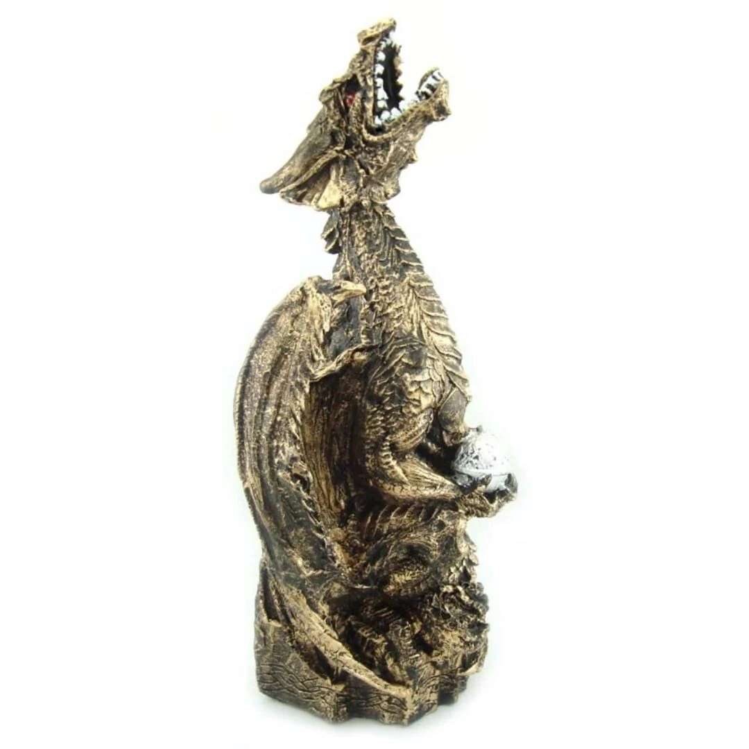 O Incensário de Dragão com esfera vertical é uma peça elegante e funcional, perfeita para quem aprecia o ritual de queimar incenso e decoração para a casa. Seu design único em forma de cabeça de dragão da um toque místico, medieval e decorativo ao ambiente. Ideal para utilizar em momentos de meditação, relaxamento ou como um elemento decorativo em qualquer espaço.