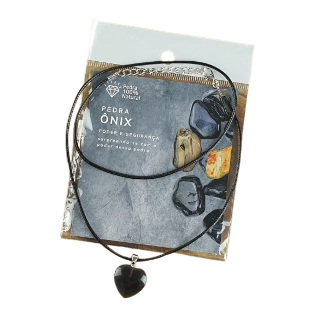 Este elegante colar apresenta um delicado pingente em formato de coração, adornado com uma pedra Ônix.