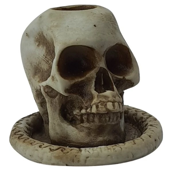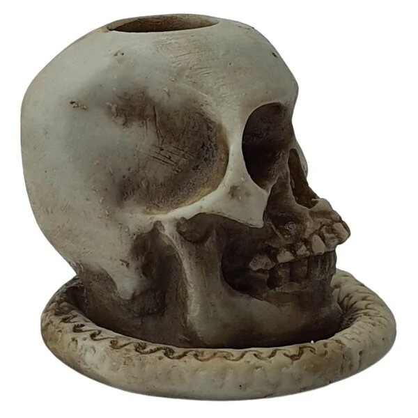 Transforme qualquer ambiente com este castiçal de crânio que parece ter saído diretamente de um filme de terror! Uma peça perfeita para Halloween, decoração gótica ou colecionadores de itens sombrios.