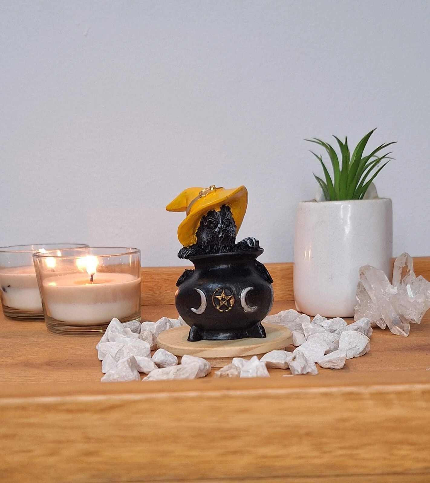 Este produto apresenta um design criativo e único para os amantes de gatos e misticismo. Ideal para quem aprecia itens de decoração mística diferenciados.