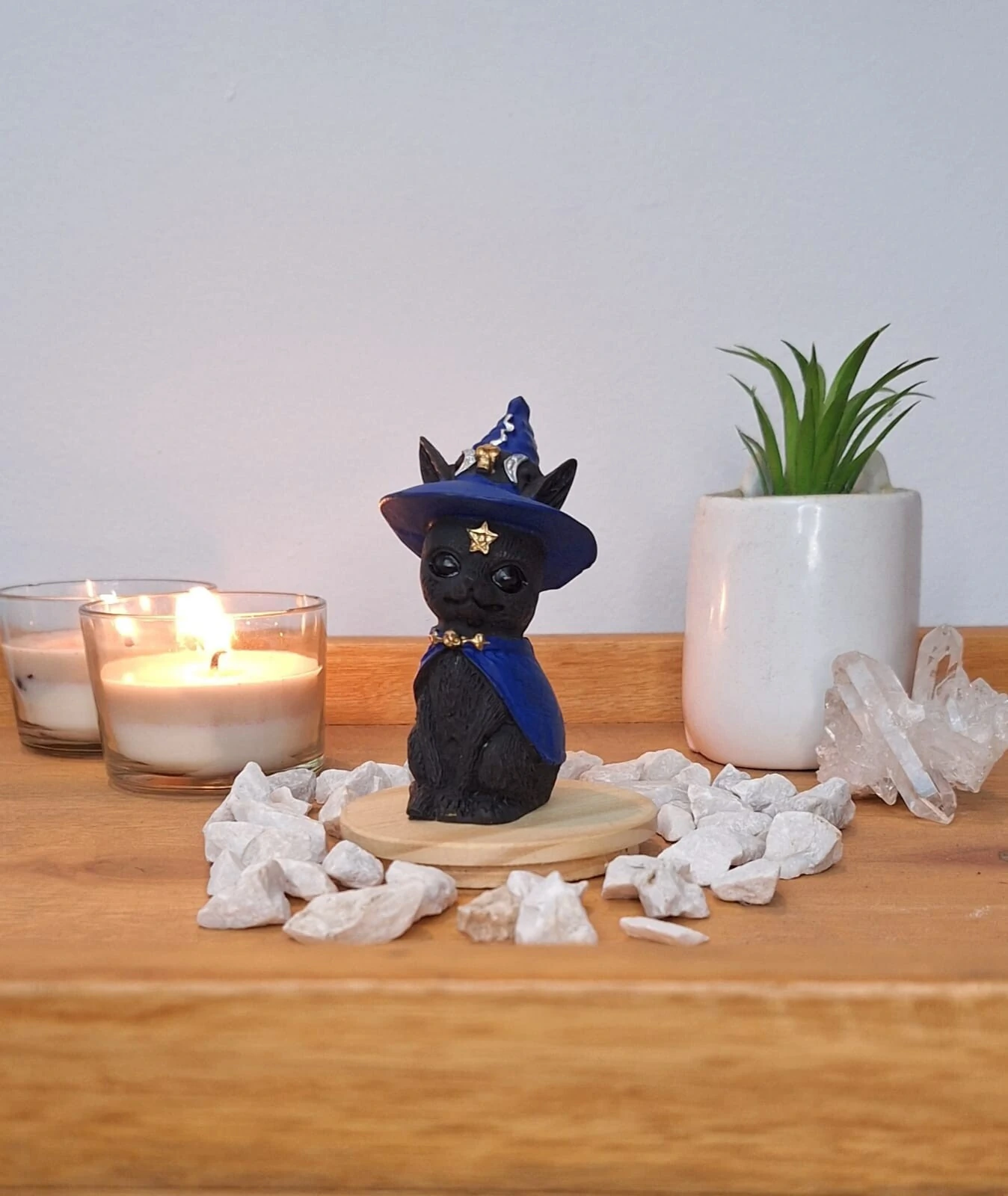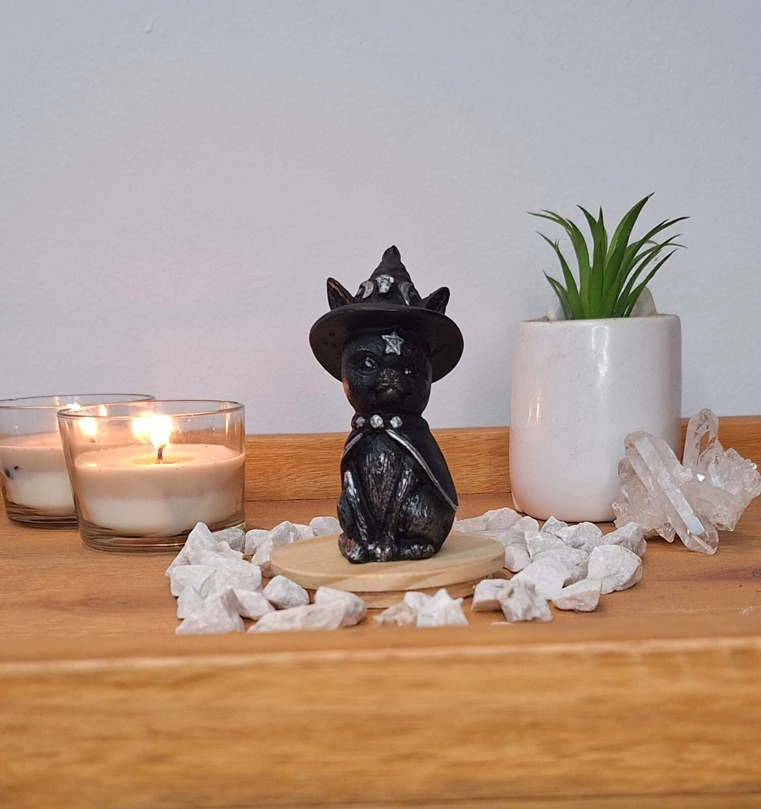 Este produto apresenta um design criativo e único para os amantes de gatos e misticismo. Ideal para quem aprecia itens de decoração mística diferenciados.
