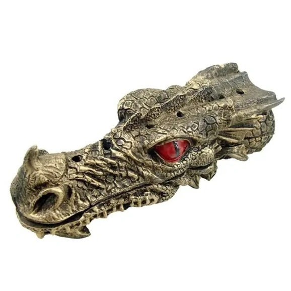 Adicione um toque de fantasia e intensidade ao seu ambiente com este incensário em formato de cabeça de dragão. Produzido em resina de alta qualidade, ele apresenta detalhes realistas e olhos com efeito iluminado que criam um visual místico e poderoso.