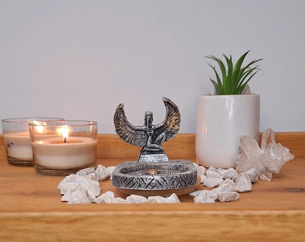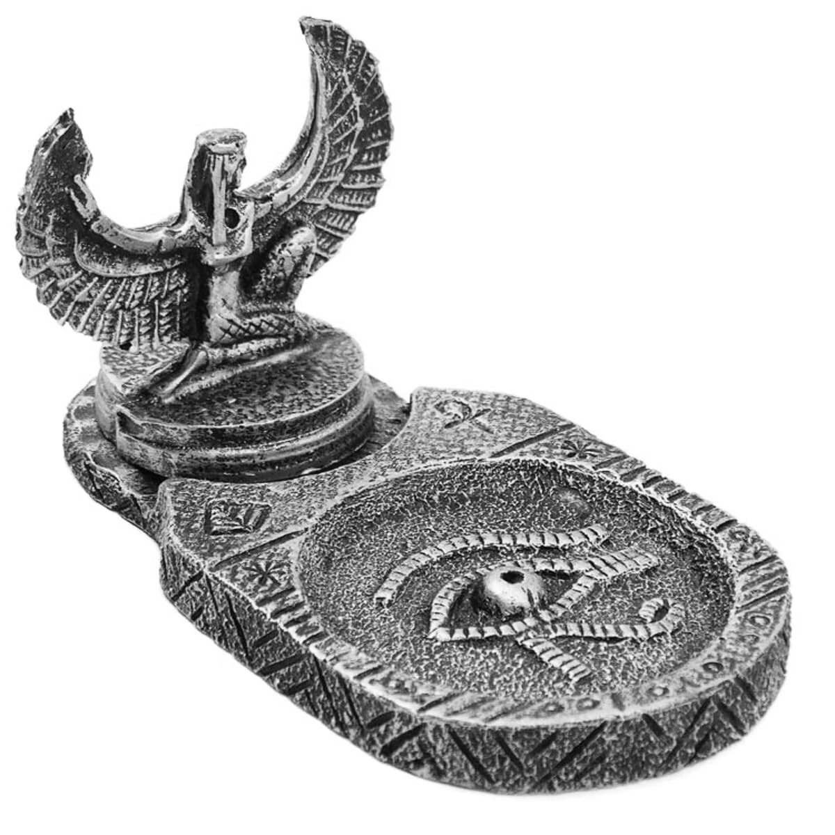 O Incensário Isis é uma peça de decoração funcional que traz um toque de tranquilidade e aroma agradável para o ambiente. Ideal para quem aprecia a prática de meditação ou simplesmente deseja criar uma atmosfera relaxante em casa. Perfeito para uso com diferentes tipos de incensos de vareta. Seu design elegante e detalhado complementa a decoração de qualquer espaço.