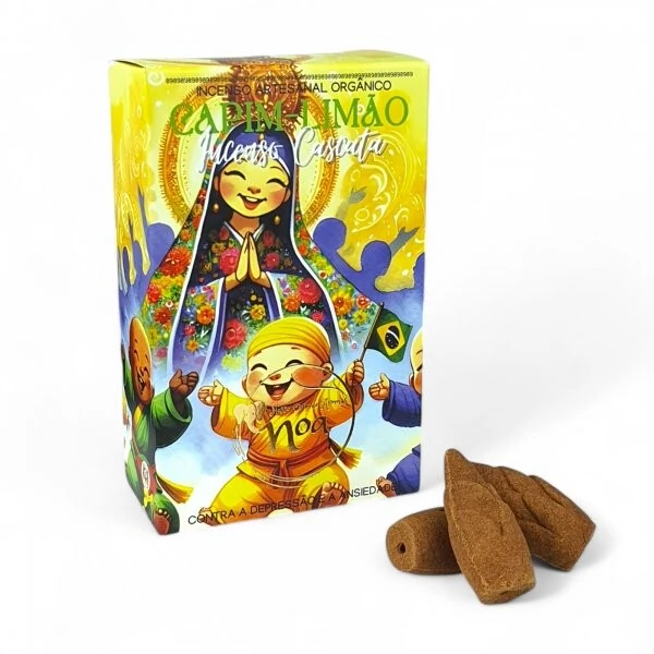 Acenda a ponta do cone em um local a prova de fogo e balance-o de um lado para o outro até que fique apenas uma pequena brasa na ponta do incenso. Após isso, coloque o lado do cone que possui o furo no local indicado do incensário para incensos de cascata.