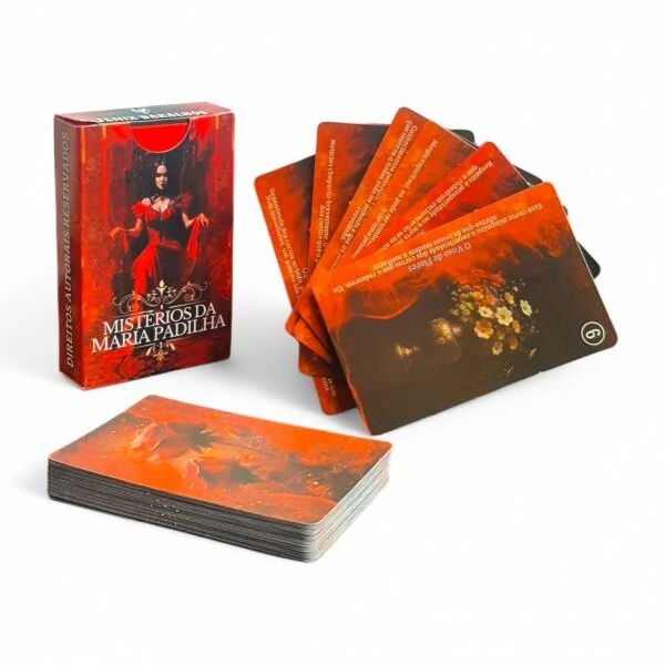Descubra os mistérios do futuro com o Baralho Mistérios da Maria Padilha. Inspirado nas tradições ciganas e na figura enigmática de Maria Padilha, este baralho é perfeito para quem busca orientação espiritual e autoconhecimento. Ideal para leituras de tarô e aconselhamento, proporciona uma conexão profunda com o universo místico.