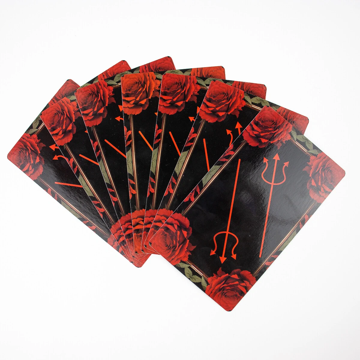 O Legítimo Tarô da Maria Padilha 36 Cartas Plastificado possui 36 cartas confeccionadas em papel cartão muito resistente e de alta qualidade. Com cores vivas e desenhos bem detalhados o nosso baralho é perfeito para que você tenha um excelente jogo. As cartas desse baralho são rígidas e leves facilitando o manuseio durante a leitura do jogo. Acompanha um manual super detalhado e com as informações necessárias para te auxiliar a fazer um bom jogo!