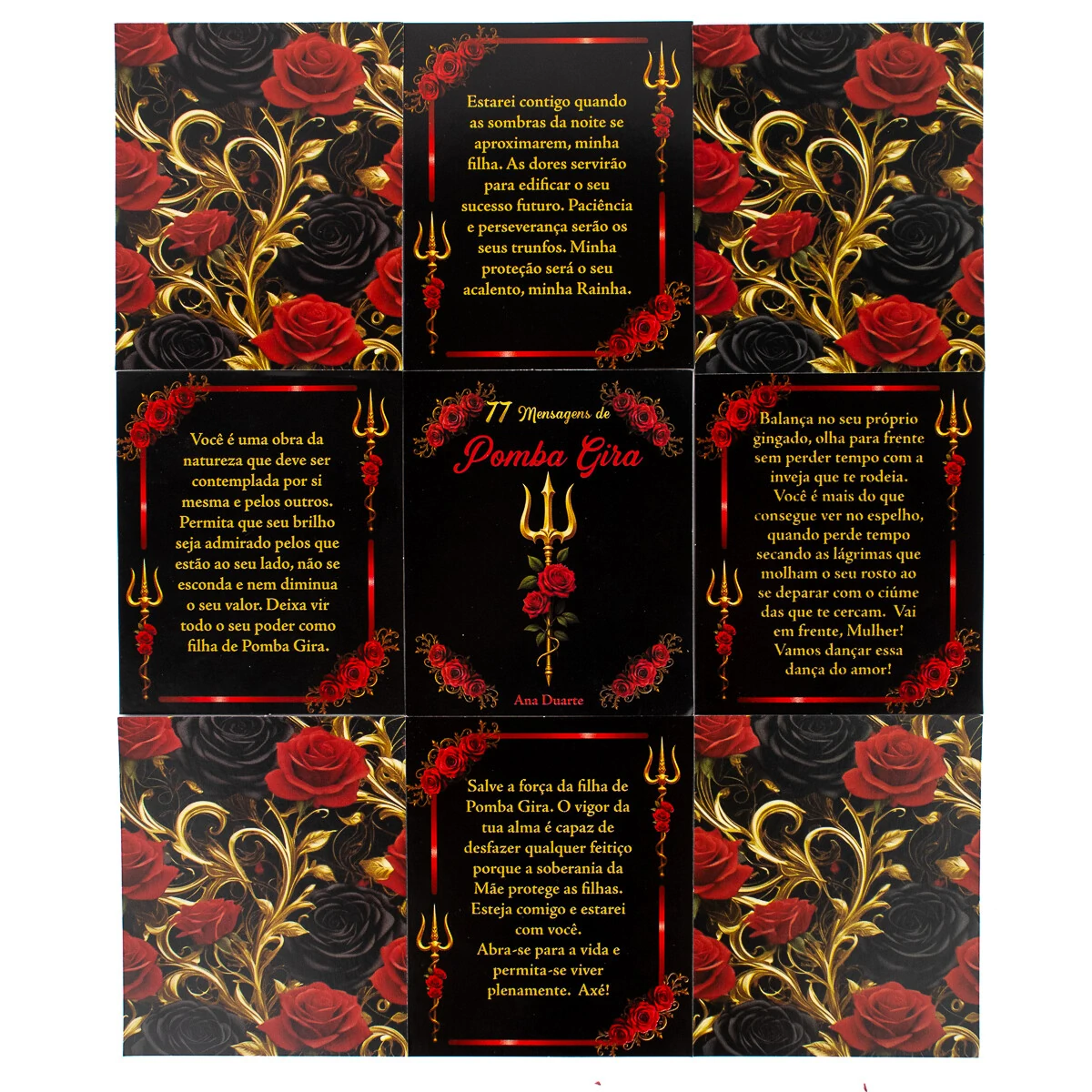 As mensagens deste Box são carregadas de amor, coragem e determinação. Elas te ajudarão a reconhecer sua própria grandeza, enfrentar desafios com garra e atrair tudo o que é seu por direito. Abra seu coração, confie na sua intuição e receba a mensagem que Pomba Gira tem para você hoje.