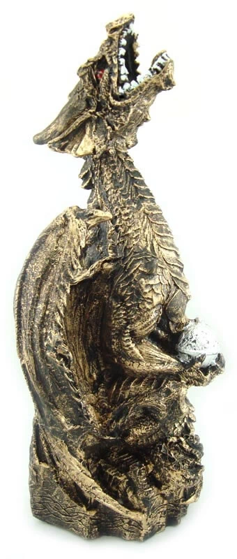 O Incensário de Dragão com esfera vertical é uma peça elegante e funcional, perfeita para quem aprecia o ritual de queimar incenso e decoração para a casa. Seu design único em forma de cabeça de dragão da um toque místico, medieval e decorativo ao ambiente. Ideal para utilizar em momentos de meditação, relaxamento ou como um elemento decorativo em qualquer espaço.
